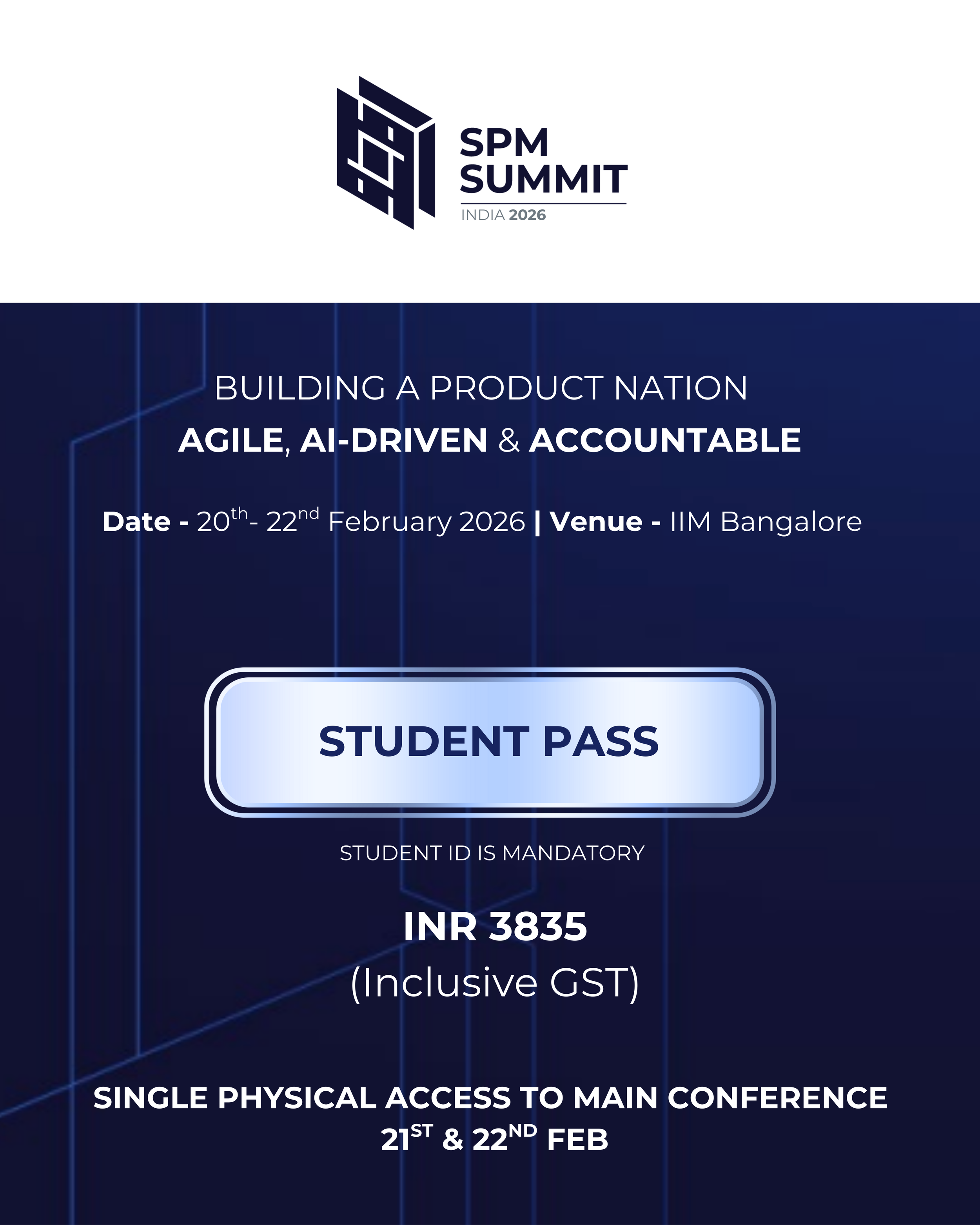 For corporate group bookings. Send us mail at spmsummitindia@ispma.org to know more and avail discount.